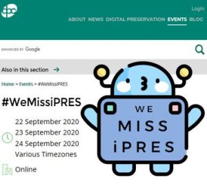 #WeMissiPRES brought together the preservation community around the world with a 3-day programme held online on 22nd, 23rd and 24th September 2020. Coordinated by the Digital Preservation Coalition, the Dutch Digital Heritage Network, and the National Science Library of Chinese Academy of Science, the event included contributions from international participants on a wide range of topics. Video recordings are hosted on YouTube and on the organizers’ Web sites.