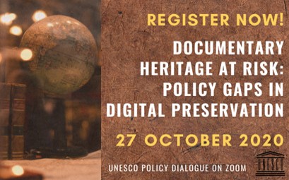 20 October 2020. The programme for the UNESCO Policy Dialogue on “Documentary Heritage at Risk: Policy Gaps in Digital Preservation†has been released. The virtual dialogue will take place on 27 October 2020 on Zoom. The event is organized in two sessions at 8am CET and 5pm CET to accommodate an international audience across different time zones. The first session will address questions about cultural identity and sustainability, while the second will focus on technology and legal frameworks.